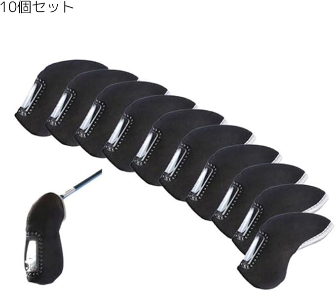 どのアイアンにも使えるヘッドカバー10枚セット。番号のプリントや刺繍がないため、どのクラブにも対応し、万が一紛失しても他のカバーで代用できます。
