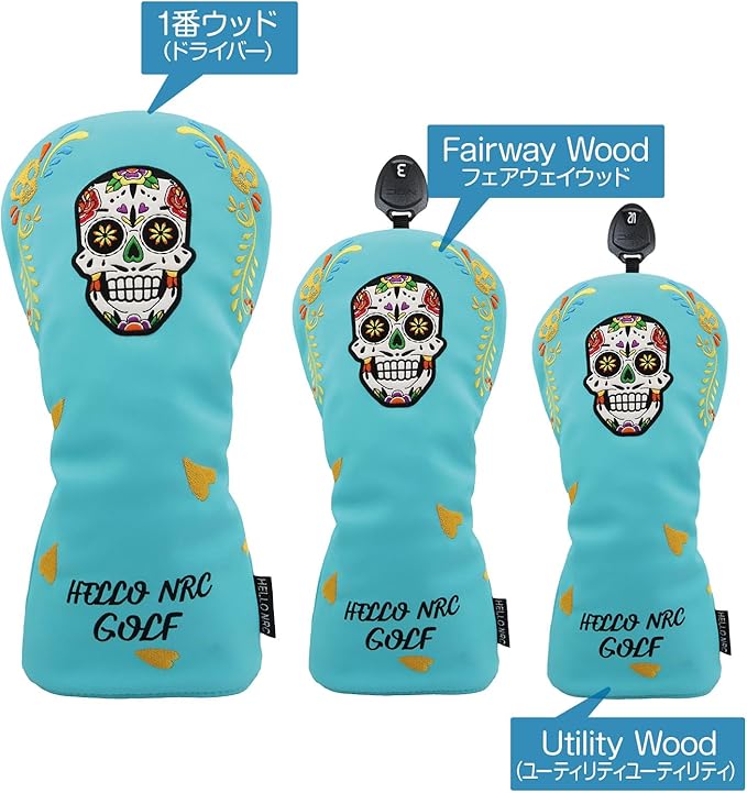 ゴルフヘッドカバー ユーティリティ セット ドライバー 460cc 440cc 対応 ウッド UT 防水仕様 Mexicoスカル