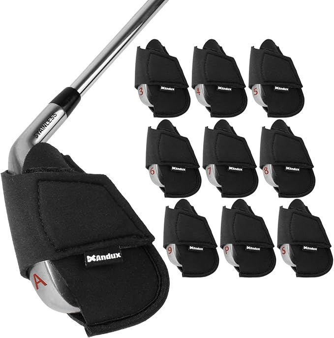 Andux 10個ネオプレンゴルフアイアンクラブヘッドカバーポーチホルダーブラック MT/N01