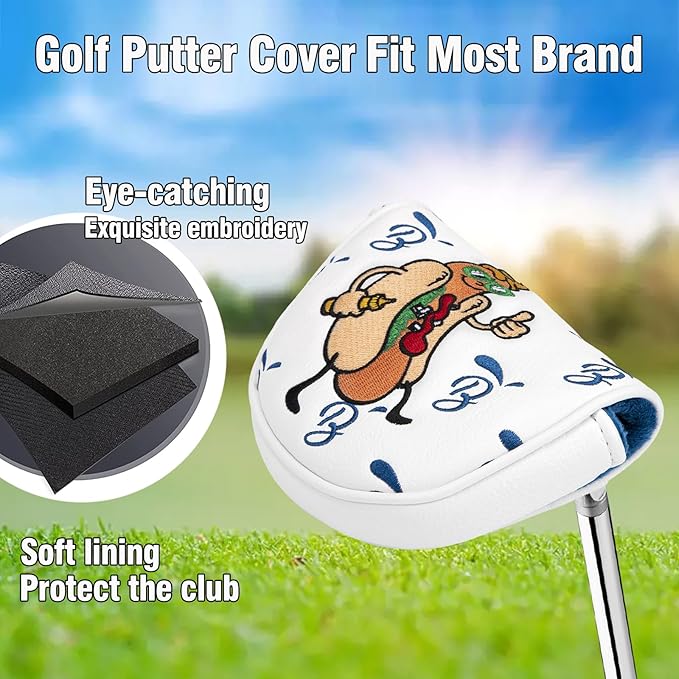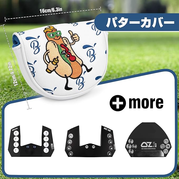 ゴルフパターカバー OZ1 プレミアム刺繍 ホットドッグ マレットパターヘッドカバー レザーゴルフクラブカバー マグネット開閉式 OZ1、MEZZ1、MEZZ1 MAXに適合