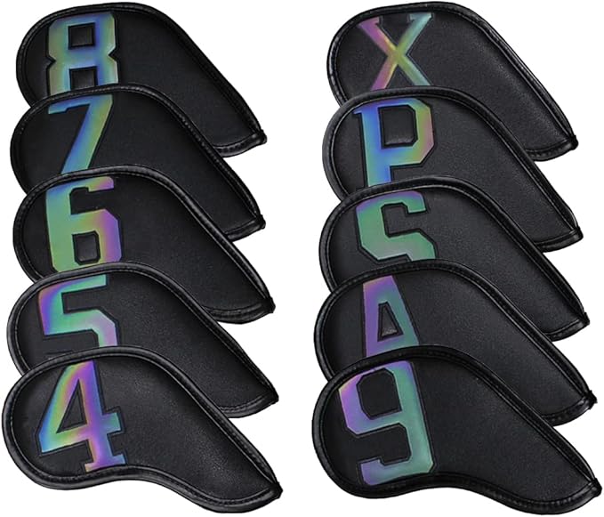 Scott Edward 10PCSウェッジアイアンゴルフヘッドカバーセットPU防水性と耐久性のある強力な磁気、大きな数字でほとんどのブランドクラブに最適