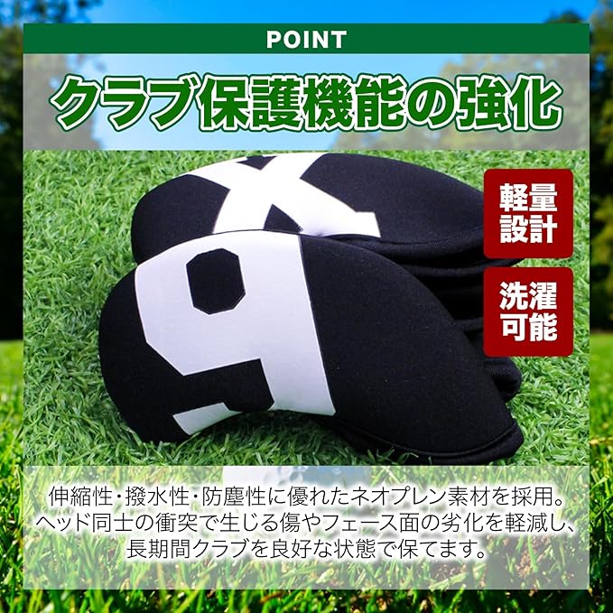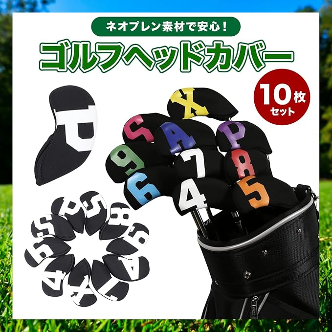 ゴルフ アイアンカバー ヘッドカバー 10枚セット 番手付き ネオプレン