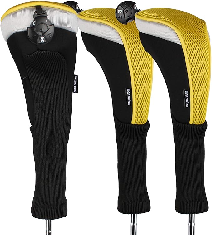 Andux ロングネック ゴルフ ハイブリッド クラブヘッドカバー 交換可能な番号タグ付き 3個セット CTMT-02