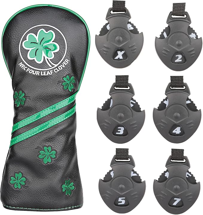 ゴルフheadcoverヘッドカバー ドライバーDR用440cc 460cc用カバー/ウッド用 FW/ユーティリティ用 UT 四葉のクローバー 白 単品1個販売/3点セット 黒