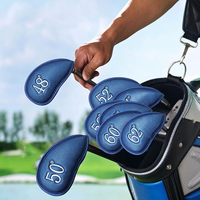 ゴルフアイアンカバー マジックテープ開閉 ゴルフヘッドカバー 高級合成皮革 軽量 耐摩耗 番号刺繍 ウェッジカバー ヘッド保護カバー 48 ~62 GDX-048
