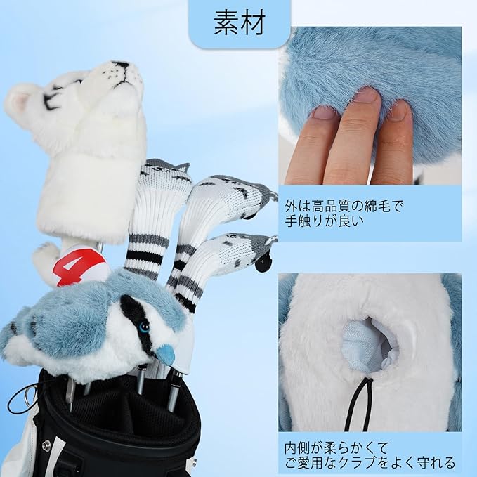 【高品質素材】表地には本物の動物の毛のような滑らかな手触り。柔らかのカシミヤ裏地、あなたの大切なクラブを傷から守ります。