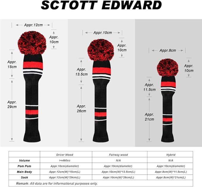 黒いの赤、白と警戒色のニットゴルフヘッドカバーセット、ドライバー、フェアウェイウッドとハイブリッドUT