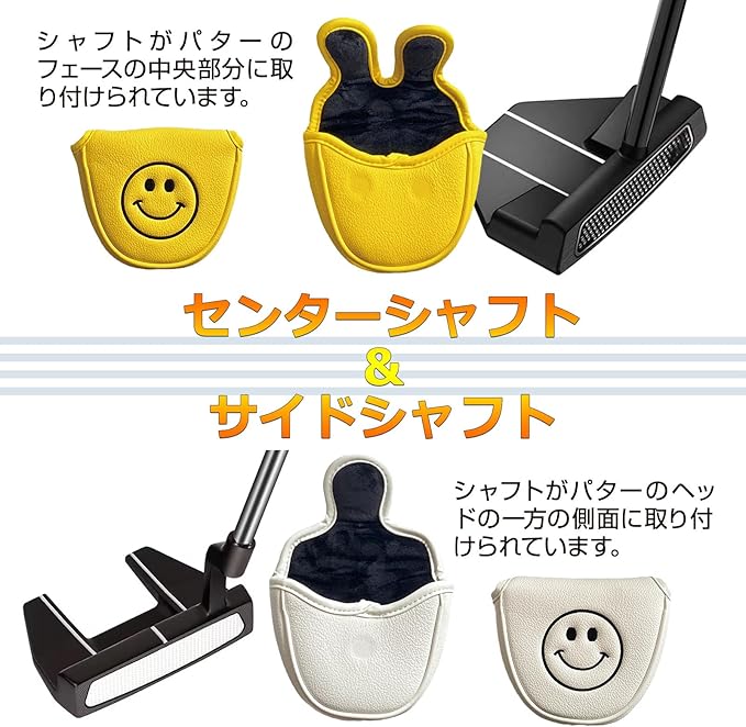 ゴルフ ヘッドカバー クラブ カバー ドライバー Eighteen Golf 440cc 460cc ウッド ユーティリティ UT カバー パター カバー 防水 おしゃれ スマイル模様