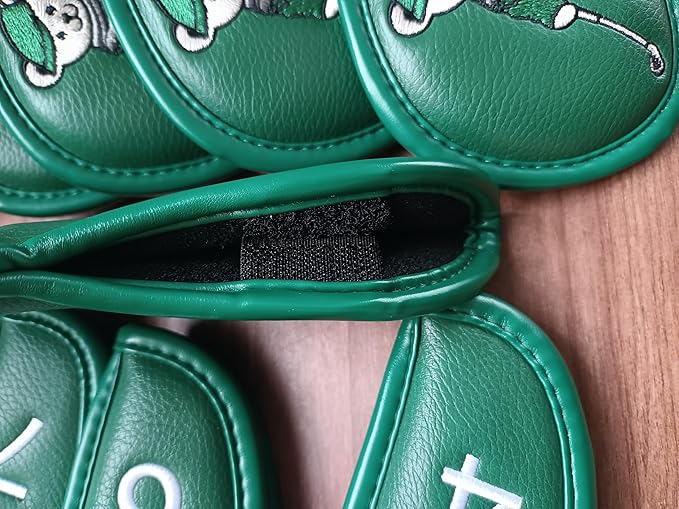 ゴルフクラブヘッドカバー10点セット、アイアン用、熊刺繡柄 ゴルフヘッドカバー おしゃれ