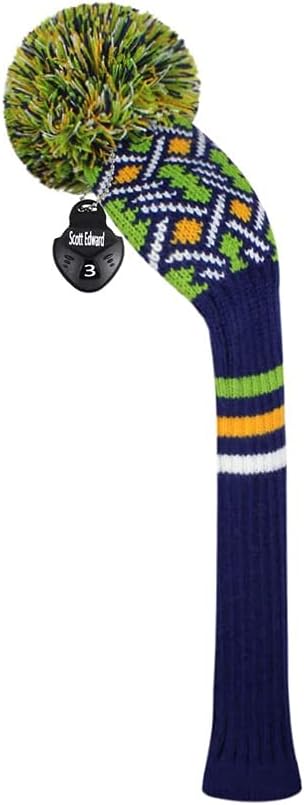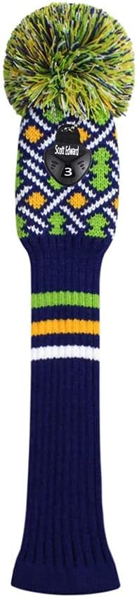 Scott Edward 1 個入り 編み物ゴルフクラブカバー(フェアウェイウッド用) 3 5 番ウッドに適合 ポンポン付き 柔らかく可愛いゴルフヘッドカバー 回転式ナンバータグ付き(よんしょくがら)