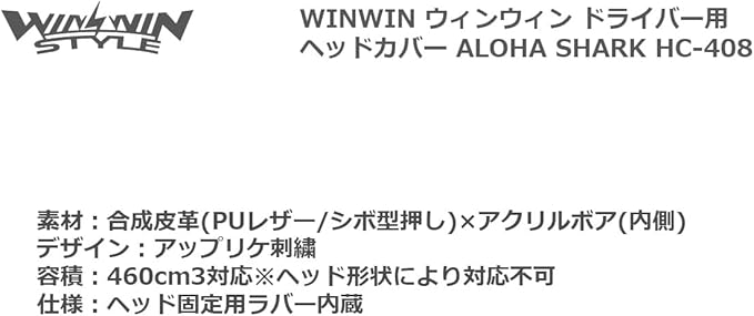 WINWIN STYLE ウィンウィンスタイル ALOHA SHARK ヘッドカバー ドライバー用 HC-408 【アロハシャーク/TAMOコラボモデル】