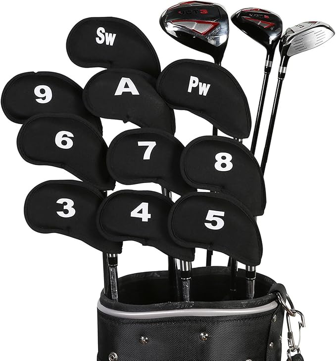アイアンカバー ゴルフクラブカバー アイアン ヘッドカバー 10枚入り(3~9、A、Pw、Sw) ブラック ネオプレン スリップオン ゴルフ