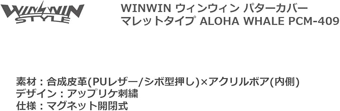 WINWIN STYLE ウィンウィンスタイル パターカバー ALOHA WHALE PUTTER COVER マレットタイプ PCM-409