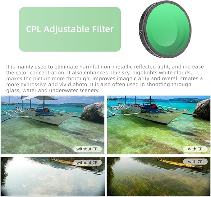 CPLとNDは調整可能なフィルターで、撮影中に必要に応じて回転させ、満足のいく偏光要件を満たすことができます。