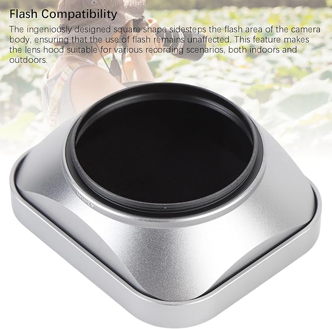 [フラッシュとの互換性]:賢く設計された四角い形状は、カメラ本体のフラッシュエリアをスキップし、フラッシュの使用に影響を与えません。さまざまな録画シナリオに適したレンズフードです。