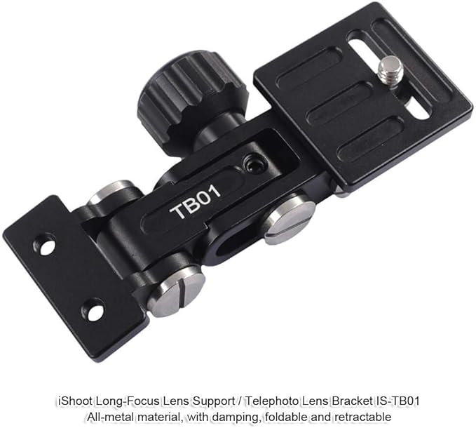 iShoot 全金属製折りたたみ式望遠ズーム レンズ ブラケット、格納式長焦点レンズ サポート スタンド、カメラ ホルダー バヨネット プロテクター、1/4" ネジ付き、IS-TB01