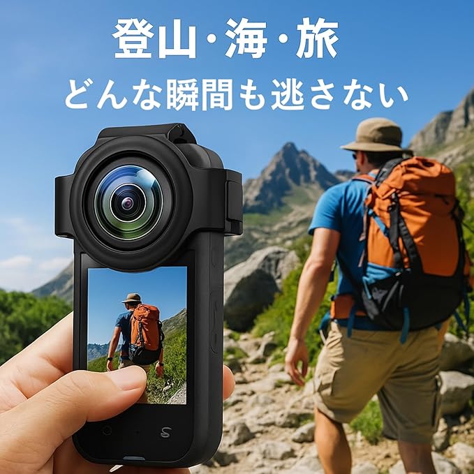 透明ガラスを使い、映像の歪みや色味の劣化を抑え、360度の美しい景色をそのまま再現できるレンズカバーです。防滴仕様で、突然の雨や水しぶきにも強く、旅先やキャンプなどのアウトドア撮影や水辺のアクションシーンにもお使いいただくことができます。