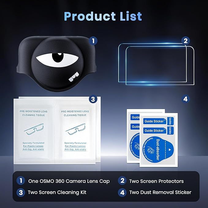 【OSMO 360に対応】このセットはOSMO 360カメラ専用に設計されています。9H強化ガラス保護フィルム2枚とスタイリッシュなレンズカバー付属しています。OSMO 360カメラと互換性があり、完璧にフィットします。