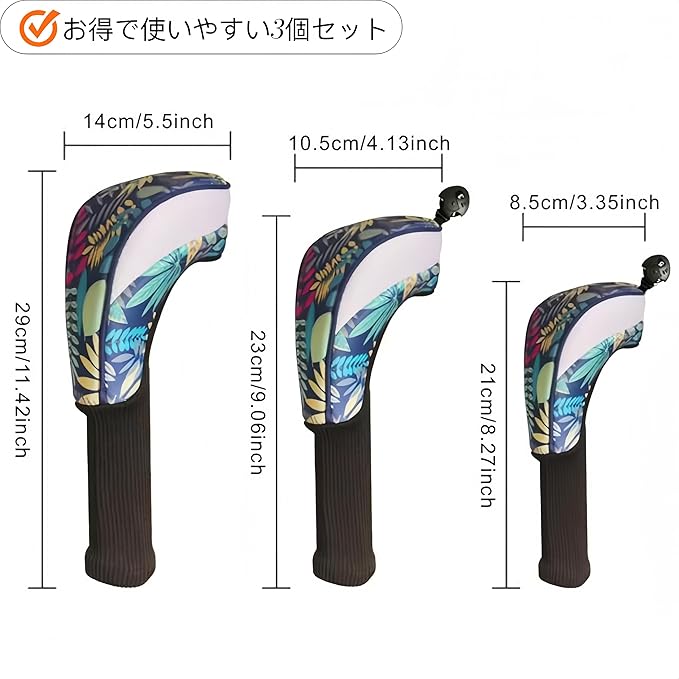 ゴルフヘッドカバー ゴルフクラブヘッドカバー 3点セット 軽量 防塵 耐摩耗 ヘッド保護カバー 440cc 460cc用 ドライバー フェアウェイウッド ユーティリティー ロングネック 変換ダグ付き (DR、FW、UT))