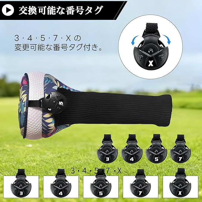 【番号タグ付き】 回転式の番号タグ付きで、3・4・5・7・Xなどを簡単に切り替え可能。必要なクラブを素早く識別できます。