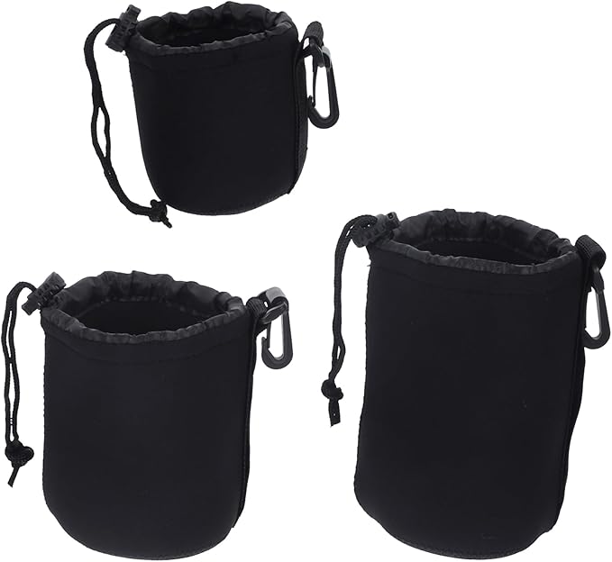 Homoyoyo カメラポーチ ソフトクッション レンズバッグ 巾着 デジタルカメラケース ミニ 小型 レンズポーチ パッド入り マルチ レンズ収納 旅行 レンズプロテクター 3個セット ブラック
