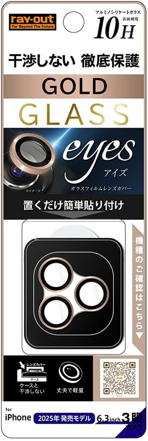 レイ・アウト カメラフィルム for iPhone 17 Pro / 17 Pro Max 兼用 カメラレンズ ガラス プロテクター カメラ保護 簡単 かんたん 失敗しない きれいに貼れる 軽量 レンズ 保護 保護フィルム 防埃 ゴールド ゴールド