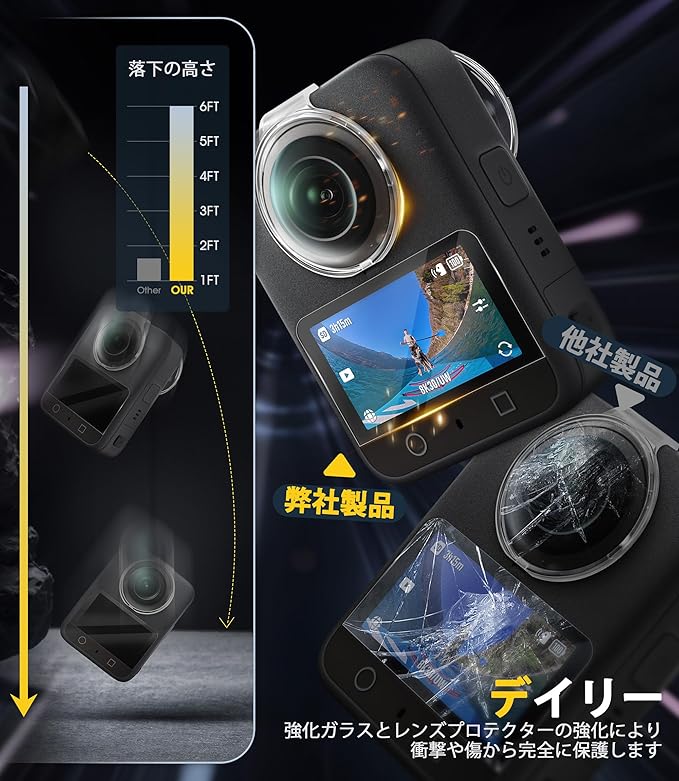 【タッチ感】極薄デザイン、かつフィルム表面に高耐久撥油コーティングが施されたことで、指紋や汚れが付きにくくになります。画面上の操作も違和感なくスムーズに行えます。保護フィルム自体の存在感が低いので、DJI OSMO 360が快適で滑らかな操作できます。