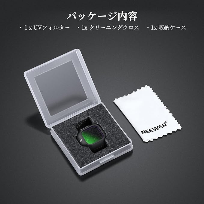 【ヘイズ&紫外線を抑制】UVフィルターはヘイズを効果的に除去し、紫外線を遮断することでカメラレンズを保護します。色精度を損なうことなく恒久的なレンズプロテクターとしても機能します。