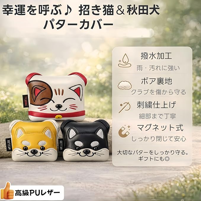 ① 縁起の良い招き猫&柴犬デザイン ゴルフ パターカバーとして人気の招き猫と柴犬モチーフ。マレット用・オデッセイ2ボール対応で、ゴルフ場でも目を引く可愛いヘッドカバーです。