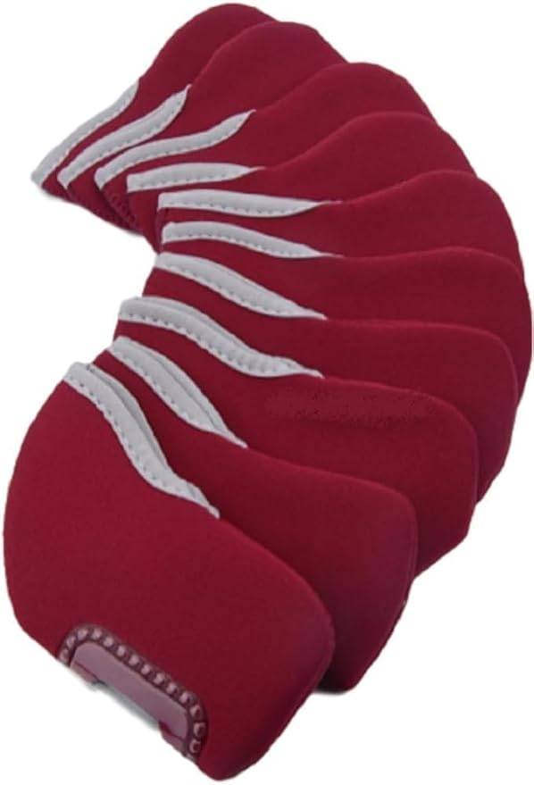ゴルフ アイアン ヘッド カバー 番手 見える 窓 付 ソフト 素材 10個 セット 色 々 選べる (ワインレッド)