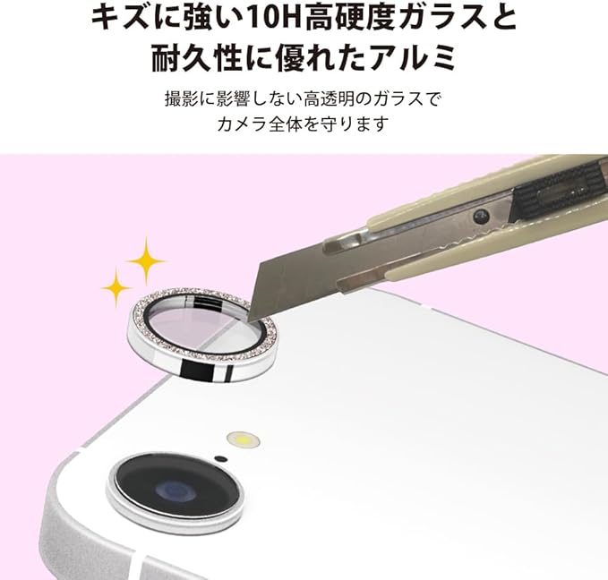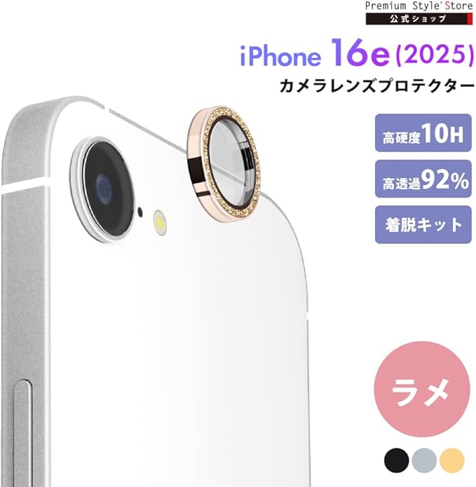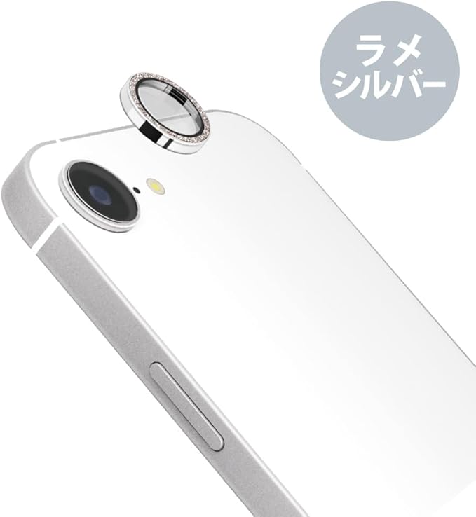 カメラレンズ周りを煌びやかに魅せるiPhone16e 用 カメラレンズプロテクター ラメシルバー