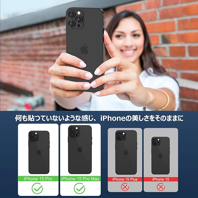 【対応機種】iPhone 15 Pro /iPhone 15 Pro Max専用レンズカバー。素材:アルミ合金 +日本旭硝子製・ 9H強化ガラス・傷がつきにくい