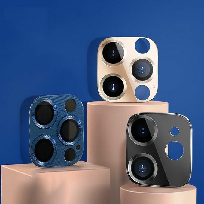 iPhone 12 Pro Max カメラレンズ 強化ガラス カメラ保護用ガラスフィルム メタルリングカバー レンズ プロテクター アイフォン12プロマックス アルミ製保護レンズカバー[iPhone 12 Pro Max(ブルー)]