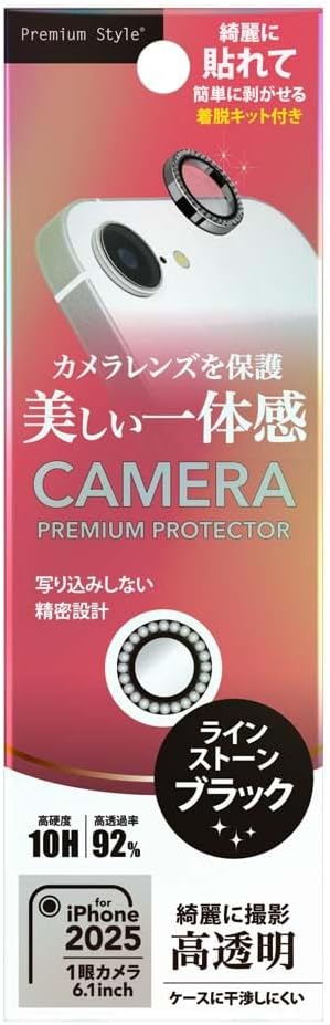 iPhone16e 用 カメラレンズプロテクター カメラレンズ レンズ保護 レンズカバー ラインストーンブラック PG-25KCLG11BK Premium Style