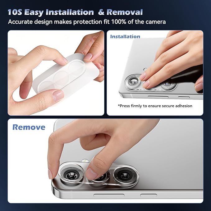 【最も簡単な取り付け】取り付け前に、取り付けビデオチュートリアルをご覧ください。取り付け前に、ほこりを取り除き、正しく位置合わせしてください。S26レンズフィルムは、アップグレードされたナノ静電自己接着技術を採用しており、カメラ保護フィルムが気泡や白い縁なしで携帯電話のレンズに効果的に接着し、簡単に剥がれません。 (ご注意:カメラレンズをクリーニングした後は、プロテクターを装着する前に1分間待ってアルコールを蒸発させてください。曇りを防ぎ、鮮明さを損なうのを防ぎます。)