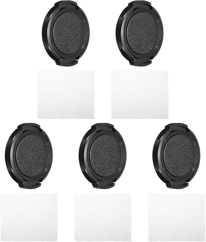 PATIKIL 37mmレンズキャップ 5個セット サイドピンチスナップカメラレンズカバー クリーニングクロス付き 37mmスレッド対応 汎用DSLRレンズに適用 黒