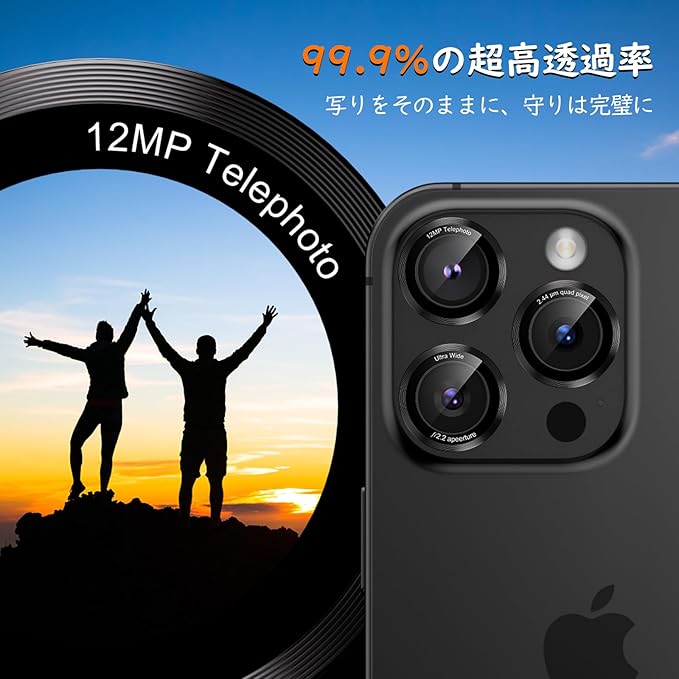 【露出オーバー防止・超高透過率・撮影への影響なし】アイフォン13プロ/13プロマックスカメラカバーは黒い縁取りデザインで露出オーバー防止でき、フラッシュ使用時の光の乱反射を抑え、写真が白っぽくなる現象を軽減します。さらにARコーティング技術により、フィルムを装着していることを忘れるほどの高い透過率を実現。iPhone本来の鮮明な画質をそのままに、美しい撮影をサポートします。