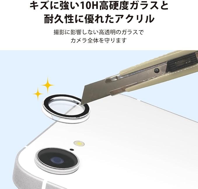 耐衝撃性に優れた「Dragontrail」ガラスを採用したiPhone16e 用 カメラレンズプロテクター