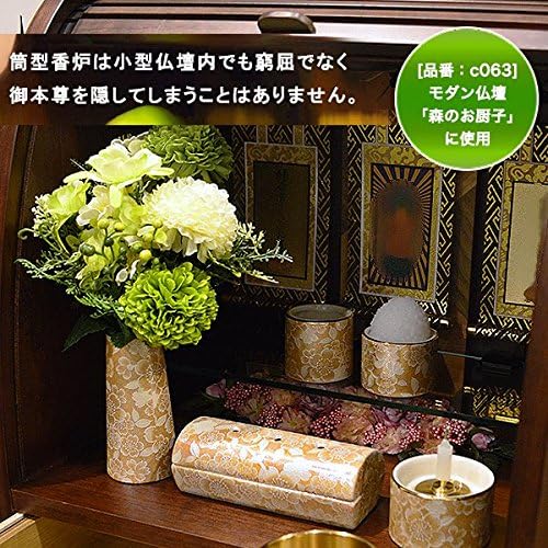 陶器製 モダン仏具5点セット『ゆい花』 (横置き筒型香炉) 桜 (j1272-1-5)