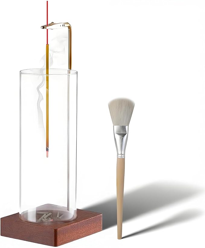 【メンテナンス・超簡単】ガラス素材は汚れに強く、水で洗うだけで簡単清潔維持。さらに清掃ブラシ付属で、ガラス内の細かい灰も隙間なく掃除可能、灰だまりを残すことなく手軽にお手入れできる。木材製ベースは“質感の良さ+高級感”を両立し、傷つきにくく耐久性抜群。長期使用しても、美しさと機能を維持し、お香の楽しみをずっと続けられる。