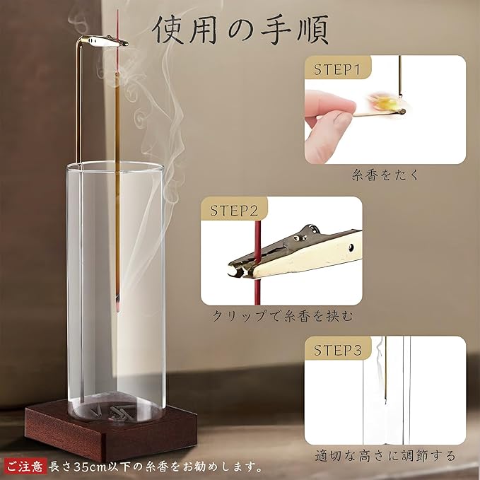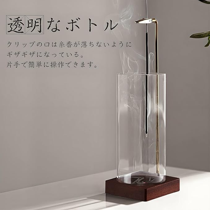 【安全性能・ベスト保障】ガラス容器が灰を完全封じ込め→「火災リスク(灰飛散で周囲が燃える心配)」と「汚れリスク(灰で周囲が黒ずむ心配)」をゼロに。長時間(家事や睡眠中)線香を焚いても、安心して離せる。“制限なくお香を楽しめる”安全設計が最大の安心ポイントで、家族でも安心して使用できる。