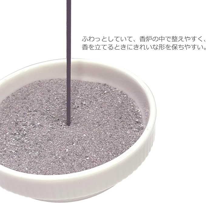 じっくりと燃焼させることによって均一に美しく焼き上げられた香炉灰です。 空気を多く含んでいるので線香の燃え残りも少なく、しっかりと使い切ることができます。 線香も無駄なく使えて燃えカスも残りにくく、非常に使いやすい香炉灰です。 製造:日本