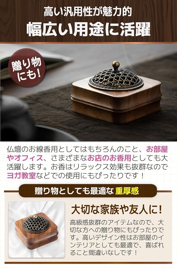 【耐久性抜群の素材】高温に耐性の強い素材なので、長く使用することができます。仏壇のお線香やお部屋のお香を毎日炊く際にとても便利です!