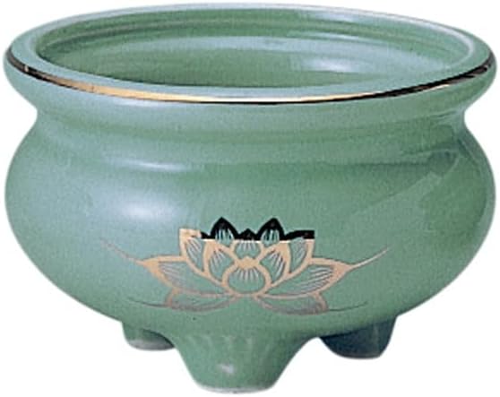 香炉 三ツ足型香炉 青磁金ハス [ 4寸 ] | 仏具 仏壇用品 手元供養 骨壷用