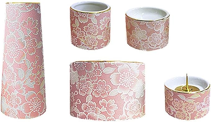 陶器製 モダン仏具5点セット『ゆい花』 (丸香炉) 桜 (j1271-1-5)