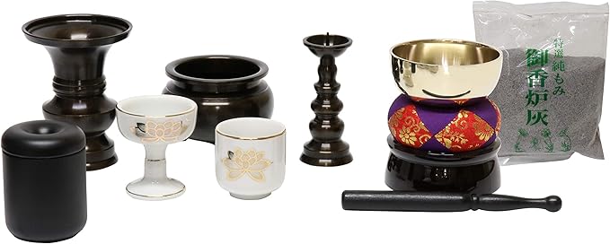 仏具8点セット 小サイズ [おりん・香炉・ローソク立て・花立て・仏器・茶器・マッチ消し・香炉灰]