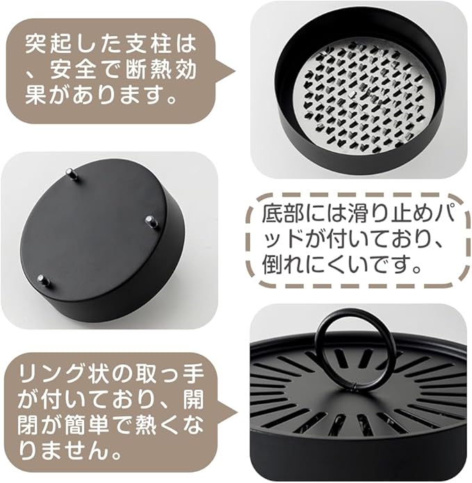 【優れたデザイン】香炉やお香からの火災を防ぐ蓋付きデザイン。蚊取り線香の挿入が簡単で、滑り止めデザインで安全に使用できます。