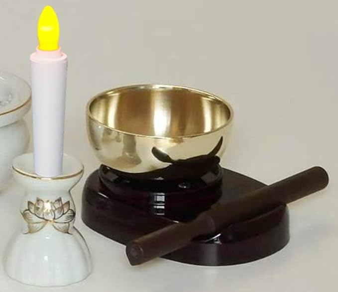 〔サイズ〕 おりん 2.3寸 ●香炉 直径8cm 高さ5.5cm(LED線香含む高さ約11cm) ●茶器 直径5cm 高さ4㎝ ●ローソク立 直径4cm 高さ5.5cm(LEDロウソク含む高さ約13.5cm) ●仏器 直径4.3cm 高さ4.8cm ●花立 直径6.5cm 高さ9cm (花を含む高さ約18cm)