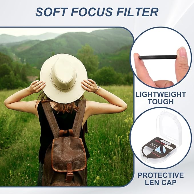 幅広い用途 - ソフト拡散フィルターは肌をより滑らかで柔らかく見せ 写真 雰囲気効果を高め 風景をより美しく自然に見せることができます。ポートレート写真 ビデオ撮影 ブログ動画に適しています。