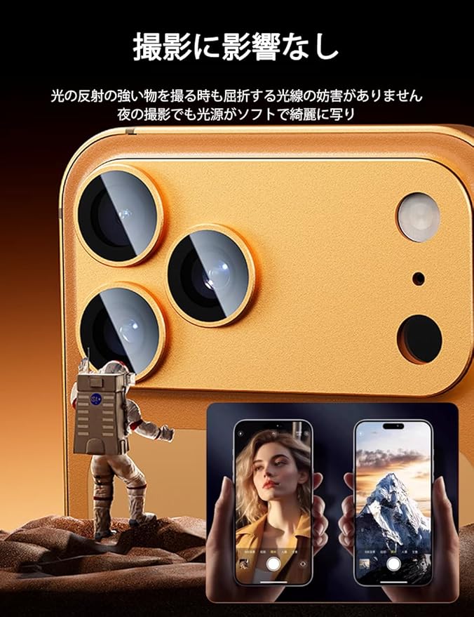 【極薄型98.5%透過率ガラス】:わずか0.25mmの極薄型カメラ保護カバー まるでカメラカバーを装着していないような本体に溶け込むような一体感。強化ガラスに光学コーディング層(AR)技術を採用して、98.5%高い光の透過率を長く維持しています。カメラ元々の高画質が損なわれなくてそのままに映します。